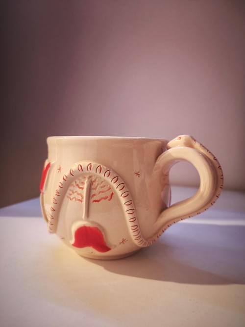 A néphit szerint a házikígyó barátja a gyermek volt - neki mutatkozott meg, vele játszott. A bögrén megjelenő villás tulipán erre emlékeztet: őrizd meg felnőttként is azt a gyermeki érzékenységet, amellyel valaha a világra néztél. A tisztaság, ártatlanság, nyitottság híd a láthatatlanhoz.