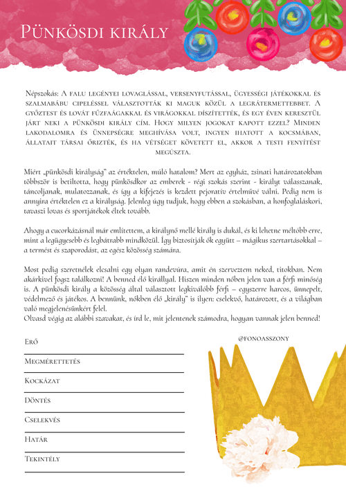 🌸 13 pünkösdi népszokást, és ahhoz kapcsolódó önreflexív kérdéseket, kreatív feladatokat